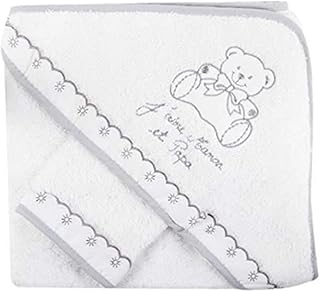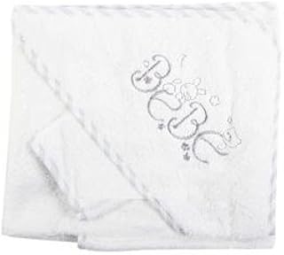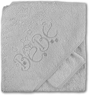 NOSBEBES® Sortie de bain brodé, peignoir, ensemble bebe Cape avec gant, 100% COTON idee cadeau naissance bébé Serviette à capuchon pour bébé, Serviette de Bain Bébé (BLANC GRIS GLO)