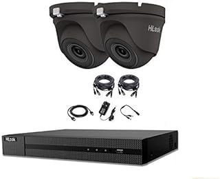 HIKVISION HILOOK Système de vidéosurveillance 5 MP 4 canaux 5 MP DVR Caméra intérieure/extérieure 2 caméras Grises tourrets Vision Nocturne Kit HDMI (1 to HDD pré-installé)