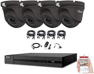 Hikvision HILOOK Système de vidéosurveillance 5 MP 4 canaux 5 MP DVR Caméra intérieure et extérieure 4 caméras dôme à tourelle, vision nocturne 2 OM Kit HDMI (disque dur 4 To, gris)