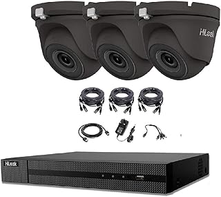 Hikvision HILOOK Système de vidéosurveillance 5 MP 4 canaux 5 MP DVR Caméra intérieure et extérieure 3 caméras dôme grises Vision nocturne 2 m Kit HDMI (disque dur 4 To préinstallé)