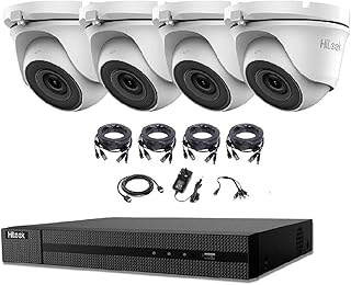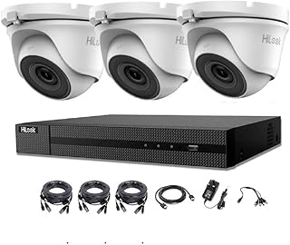 HIKVISION HILOOK Système de vidéosurveillance 5 MP 4 canaux 5 MP DVR Caméra intérieure/extérieure 3 caméras de tourrets Blanches 2 m Vision Nocturne Kit HDMI (2 to HDD pré-installé)