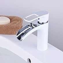 Leekayer Cascade Mitigeur Robinet de salle de bain robinet mitigeur poignée 1 Plat Chrome Bec Blanc Peinture Toilettes