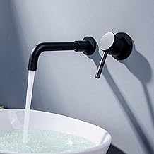 jruia 2 trous montage mural Noir mat Robinet mitigeur de lavabo encastré Bain Robinet orientable à 360 ° Robinet mitigeur support mural Robinet de lavabo en laiton chromé saillie 20,5 cm