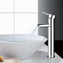 BONADE Robinet de Lavabo avec Bec Haut Mitigeur de Vasques sur Table Robinet Salle de Bain en Laiton Chromé Mitigeur Cylindrique