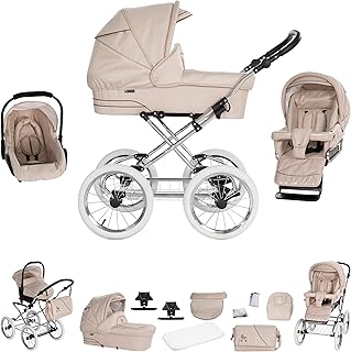 Friedrich Hugo München | 3 en 1 poussette combiné pack de voyage | Nostalgie poussette | Couleur: Sand - Rad: chrome blanc
