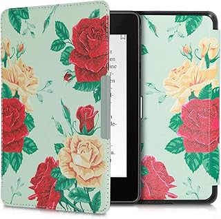 kwmobile Étui liseuse Compatible avec Amazon Kindle Paperwhite (10. Gen - 2018) - Housse avec Rabat magnétique en Simili Cuir - pivoines Rouge-Beige-Vert Clair