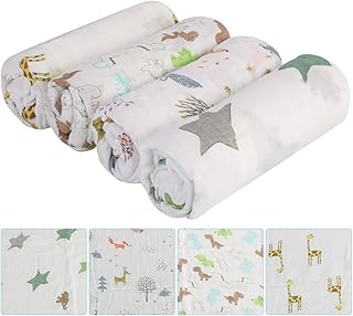 Haokaini 4Pcs Bébé Nouveau-Né Recevant Une Couverture Couverture de Langes pour Animaux de Dessin Animé pour Nourrisson Couverture Neutre en Mousseline Cadeaux de Fête de Naissance pour Tout-Petit