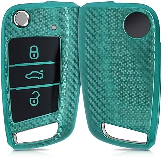 kwmobile Accessoire Clef de Voiture Compatible avec VW GTI Skoda RS 3-Bouton - Coque de Protection en Silicone Carbone Vert